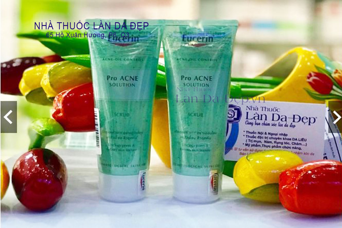 💖Eucerin ProAcne Scrub là sản phẩm tẩy tế bào chết không chứa dầu, kết hợp Lactic Acid giúp giảm mụn mà không làm khô da.