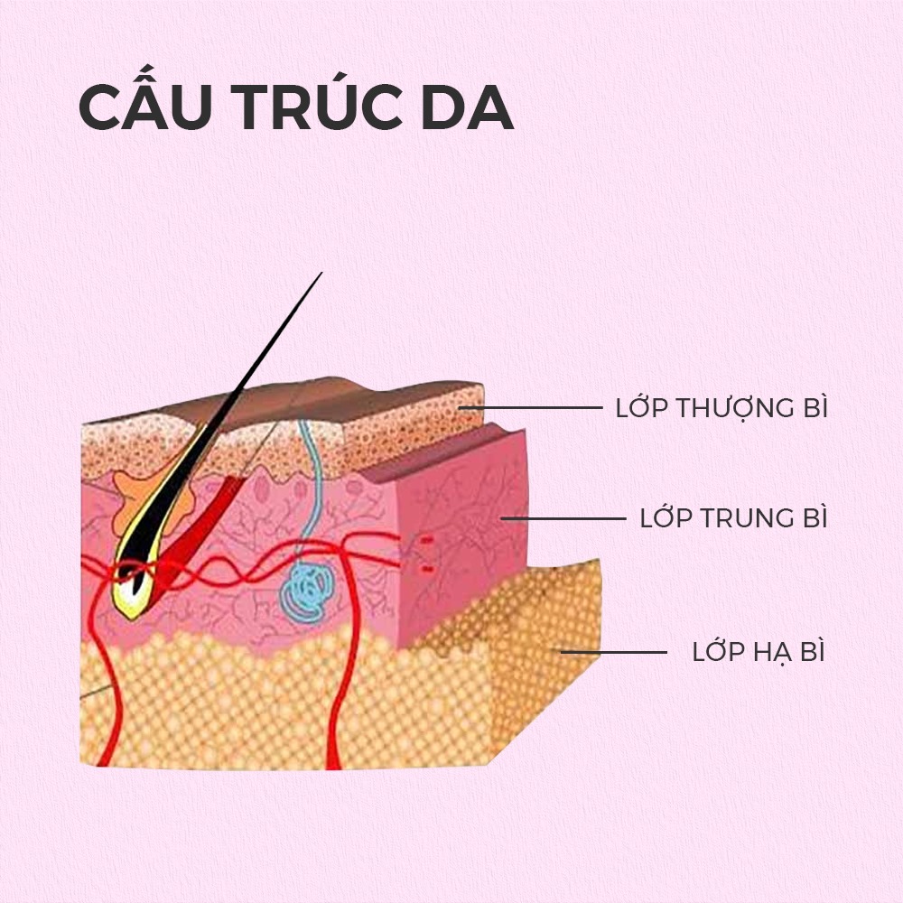 Da có 3 lớp: lớp biểu bì (thượng bì), lớp trung bì và lớp hạ bì (lớp mô dưới da).