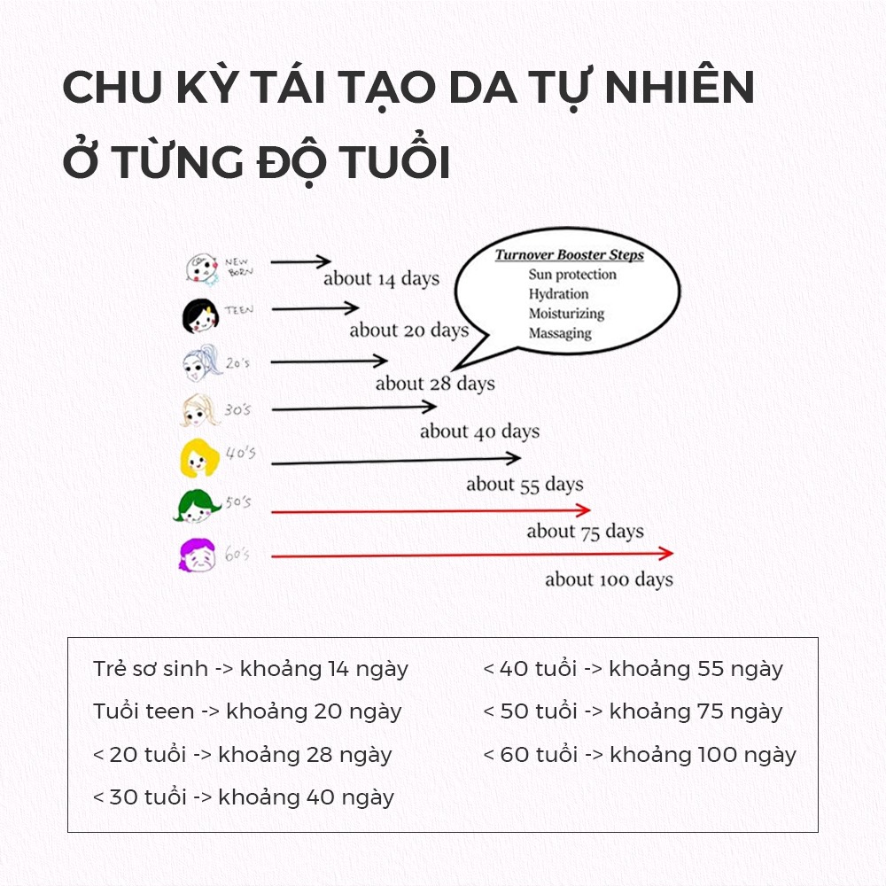 3. Quá trình tái tạo da theo từng độ tuổi theo bảng sau.