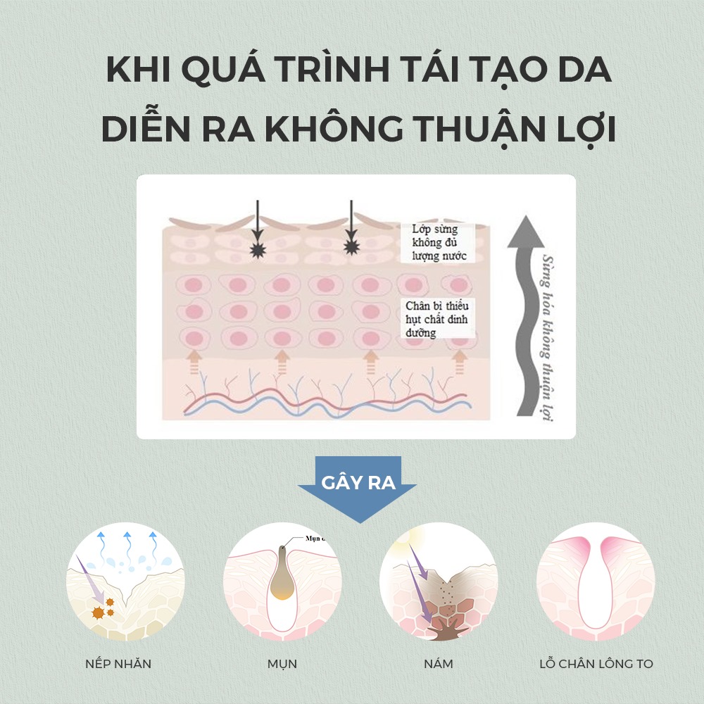 – Ngược lại nếu turnover diễn ra nhanh, lớp sừng hình thành không đầy đủ, dẫn đến khả năng giữ nước giảm. Da sẽ trở nên khô ráp. Hiện tượng này gọi là sừng hóa không hoàn toàn.