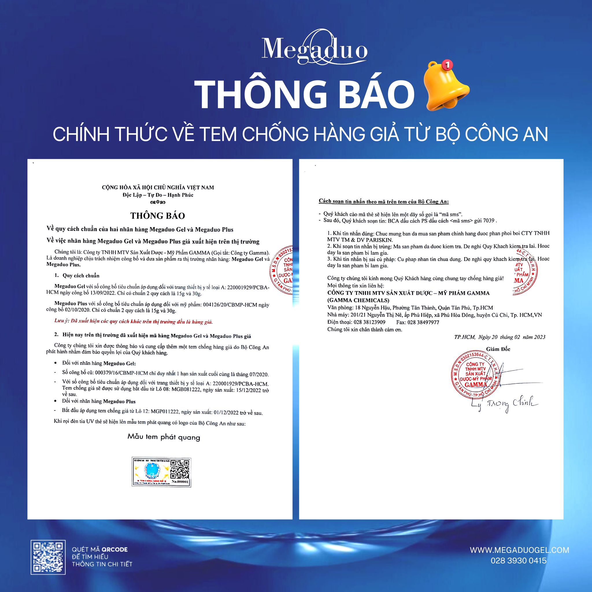THÔNG BÁO CHÍNH THỨC TỪ CÔNG TY GAMMA VỀ TEM CHỐNG HÀNG GIẢ CỦA BỘ CÔNG AN