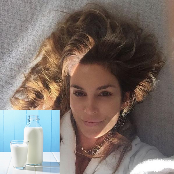 Sữa có rất nhiều công dụng và một trong những công dụng đó là giữ ẩm và làm mềm da. Quý bà Cindy Crawford đã pha sữa với nước và xịt lên da mặt cả ngày khi cần. Bạn nên tin vào sự hiệu quả của công thức xịt khoáng này khi nhìn vào làn da của Cindy